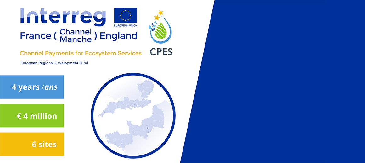 Channel Payments for Ecosystem Services (CPES) is a cooperation project managed within the Interreg VA France (Channel) England programme. It has a €4 million budget, co-financed by the European Regional Development Fund (€2.8 million), and runes for a 45 month period (2017-2020). Fourteen partners are working towards a common goal: to improve water quality by implementing sustainable ayments for ecosystem services (PES) schemes in six pilot catchments in Southern England and Northern France.